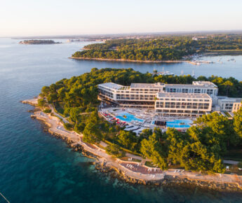 Komfortný v tieni borovíc skrytý a plne klimatizovaný hotel. Leží na výbežku v Zelenej lagúne, obklopený z troch strán morom. Je ideálnym miestom pre kľudnú a oddychovú dovolenku. Od centra Poreča je vzdialený 5 km, kam premáva v sezóne každých 30 minút aj turistický vláčik.