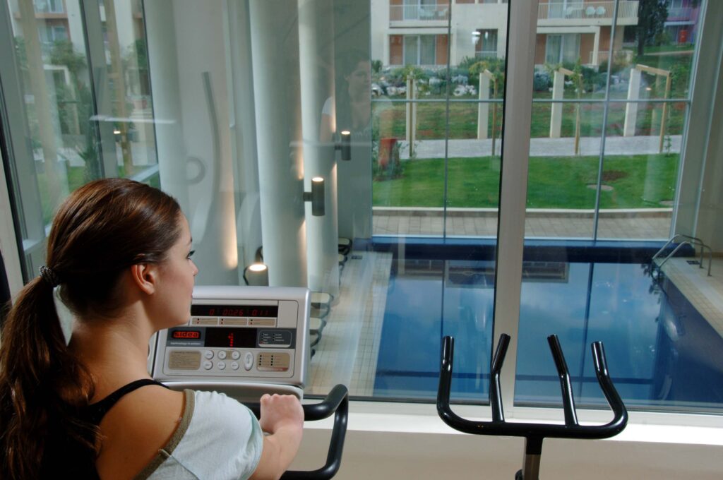 Veľký vonkajší bazénový komplex, games room, detské ihrisko, strážená garáž na bicykle, prenájom a servis bicyklov.